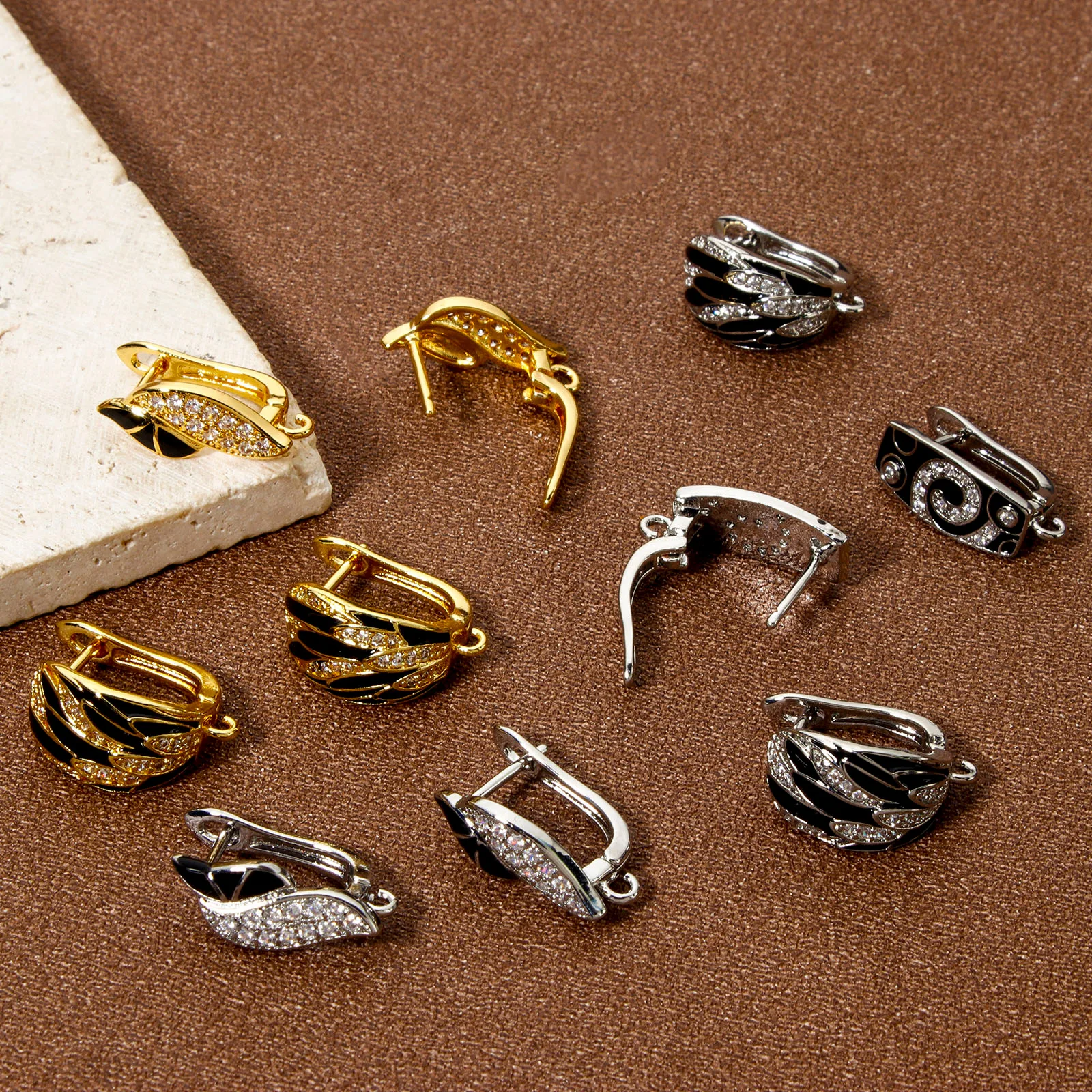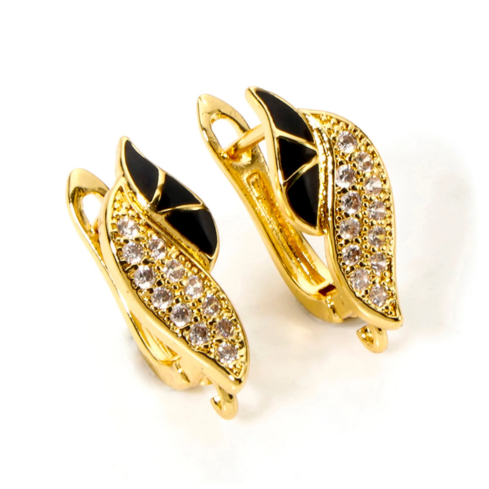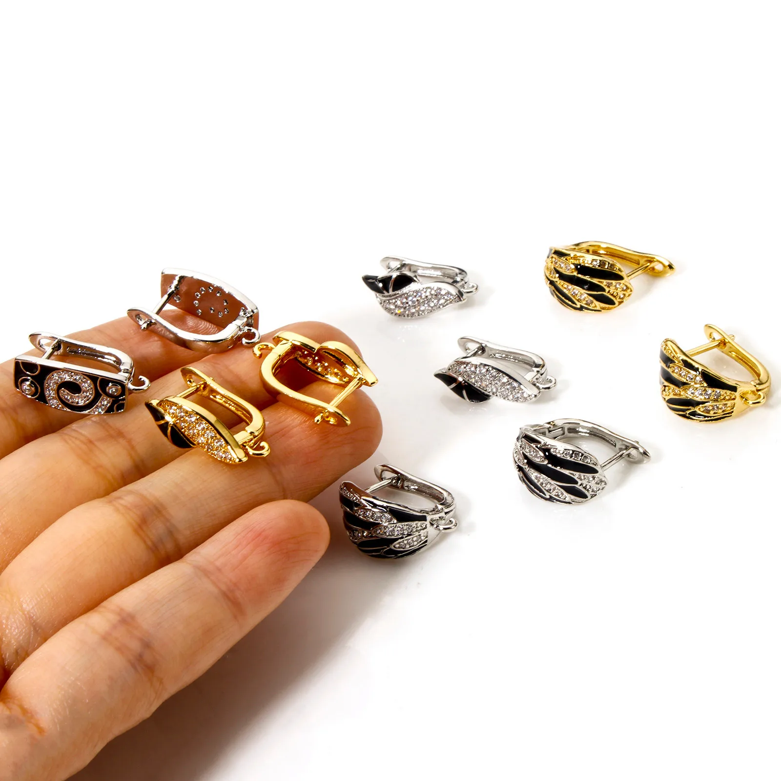 Bouclesd’oreilles 1/2 Pair Brass Micro Pave Hoop Earrings With Loop Black Enamel Clear Cubic Zirconia Earwires Fasteners Accessories For Earring