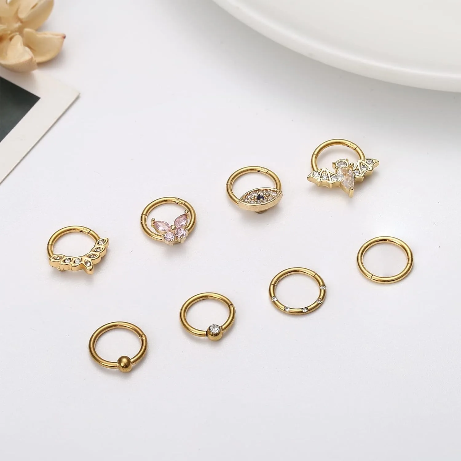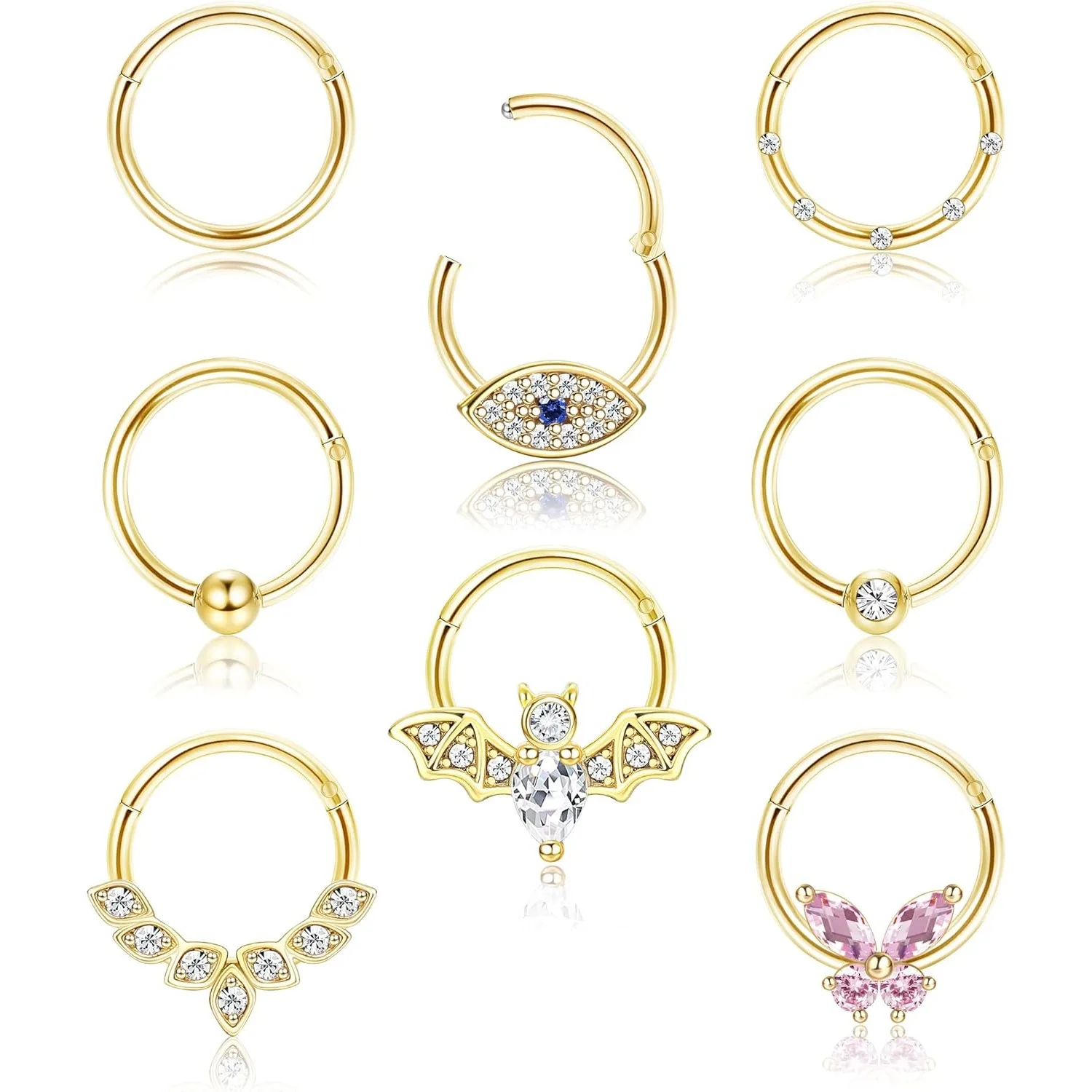 Boucle d’oreilles Bobisty 8Pcs Septum Rings 16G Nose Rings Hoops for Women CZ Helix Cartilage Tragus Earrings Septum  Piercing Jewelry Halloween