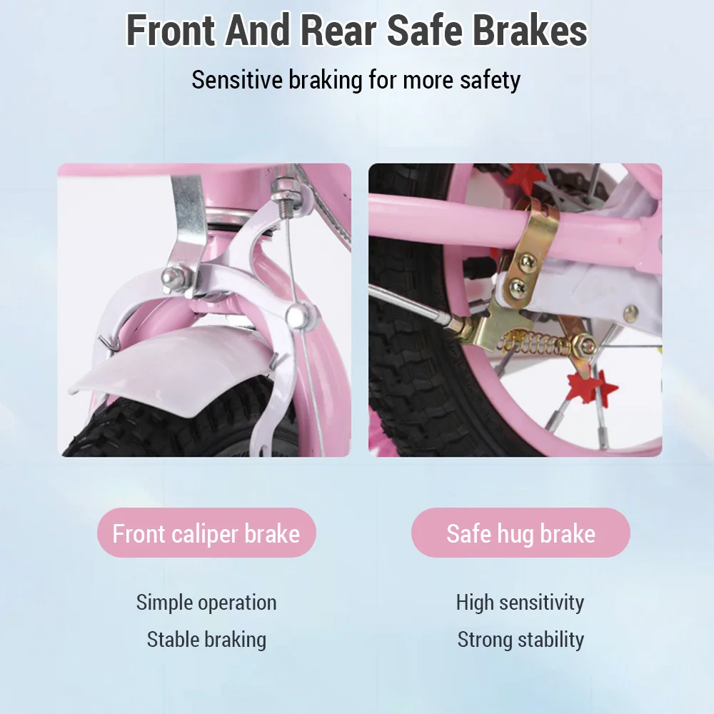 This children's bicycle, with its high-carbon steel frame, wear-resistant tires, and safe brakes, provides a safe and comfortable riding experience for children aged 2-10.