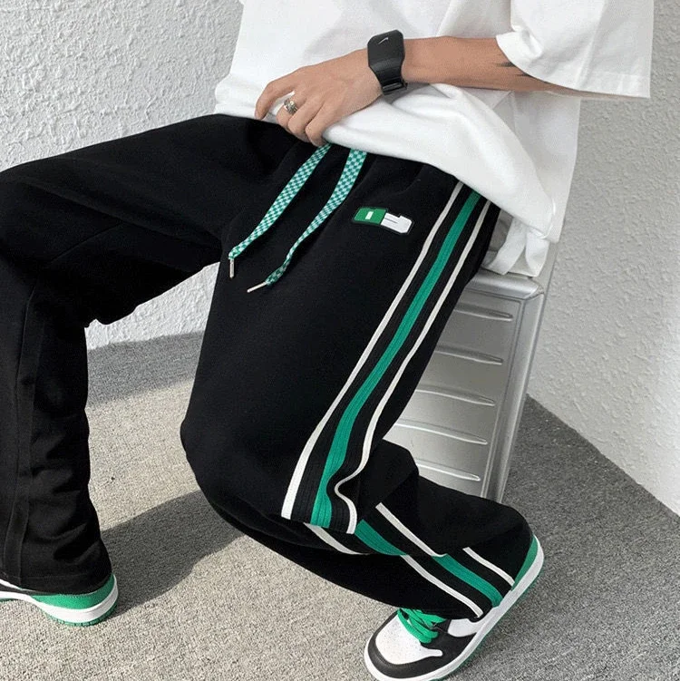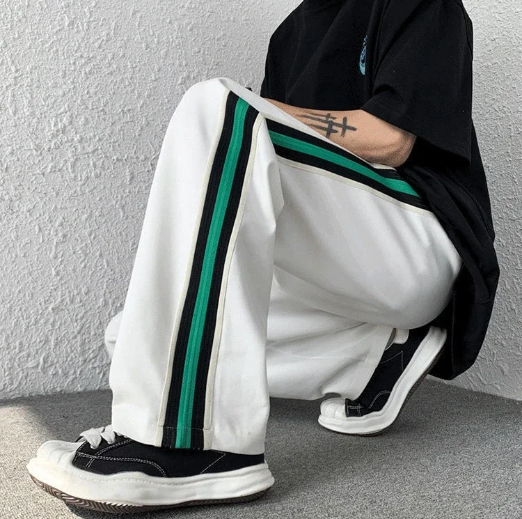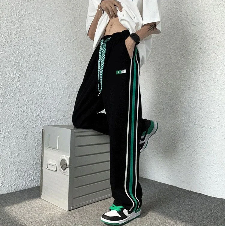 Male Sweat Pants Track Sport Trousers Straight Sweatpants for Men Athletic Stripe Wide Leg Black Stylish Casual New Items in Y2k