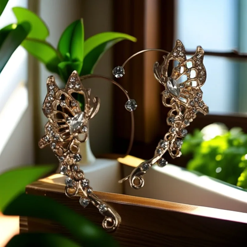 Boucles d’oreilles Newly launched, hot-selling, super shiny butterfly fairy ear clips for non-pierced ears. niche, luxurious and light earrings