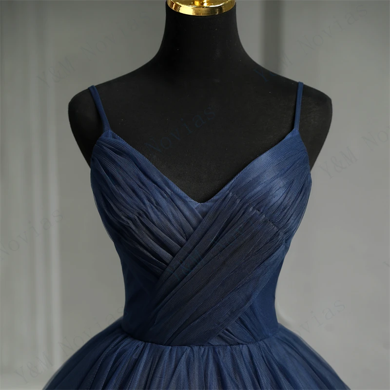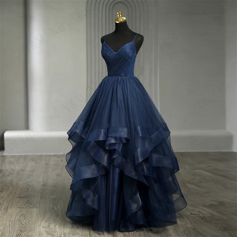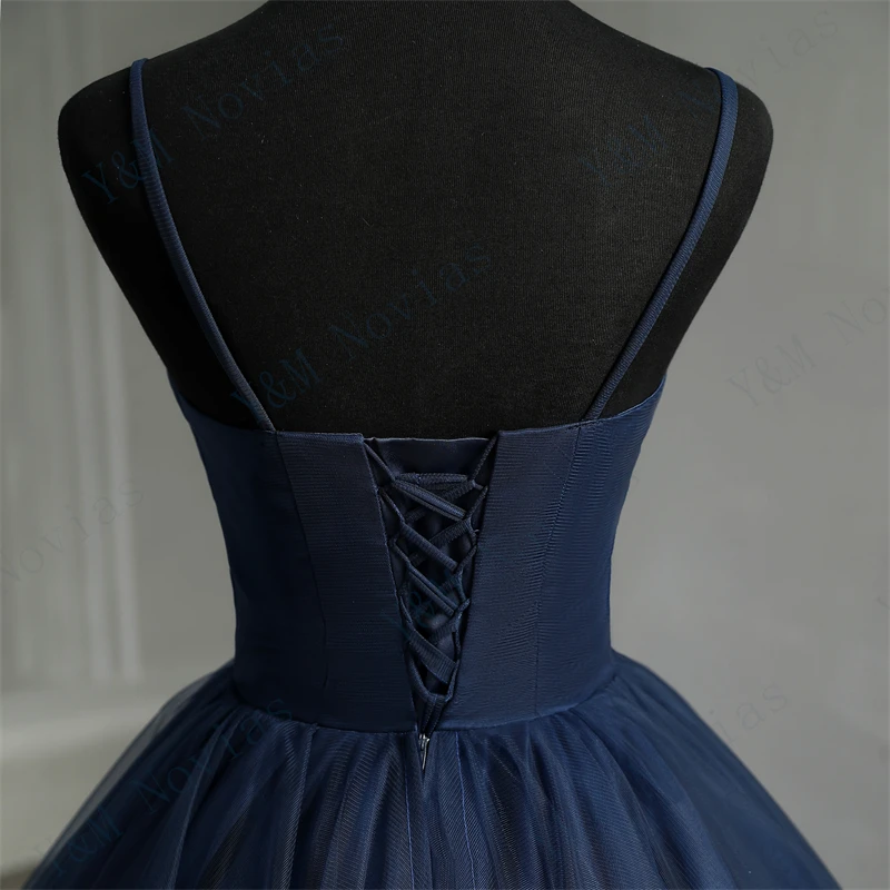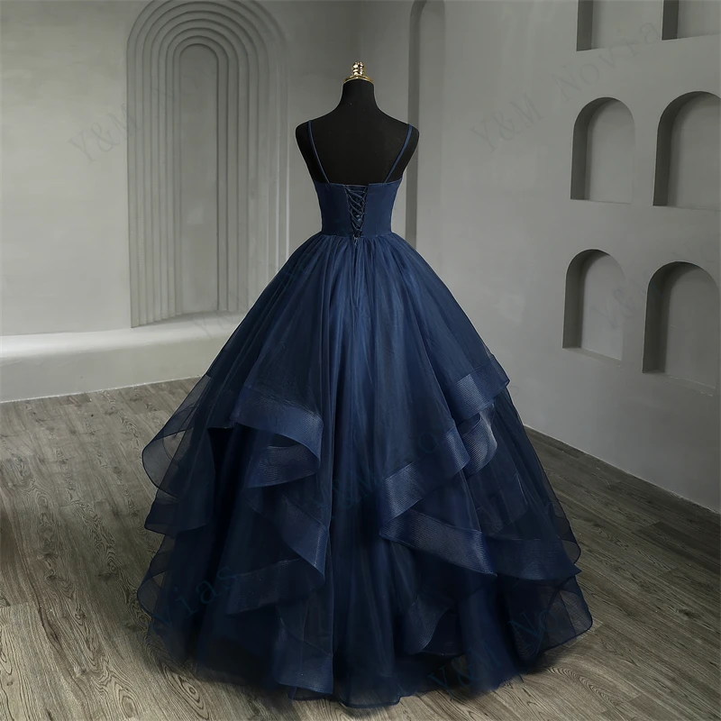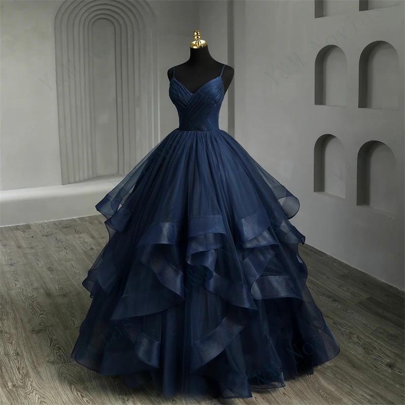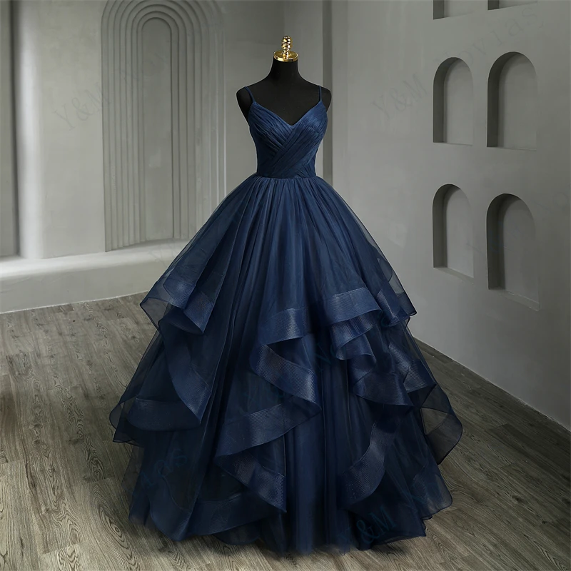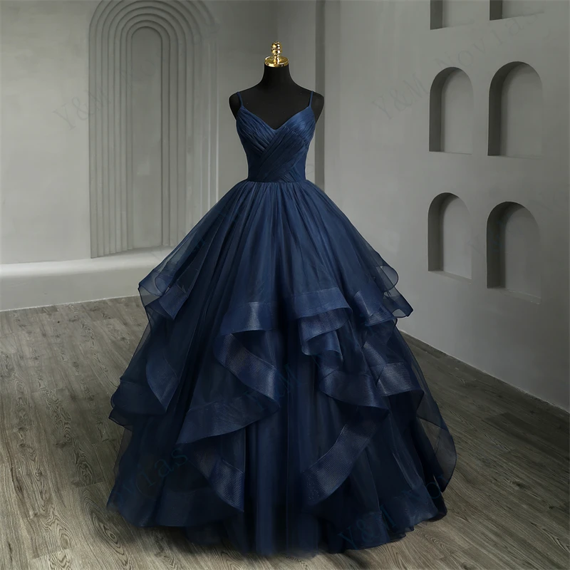 Tulle Dress New Boho Navy Blue Quinceanera Dresses Ruffles V neck Spaghetti Straps Simple Party Sexy Princess Gown Vestidos De Quinseanera